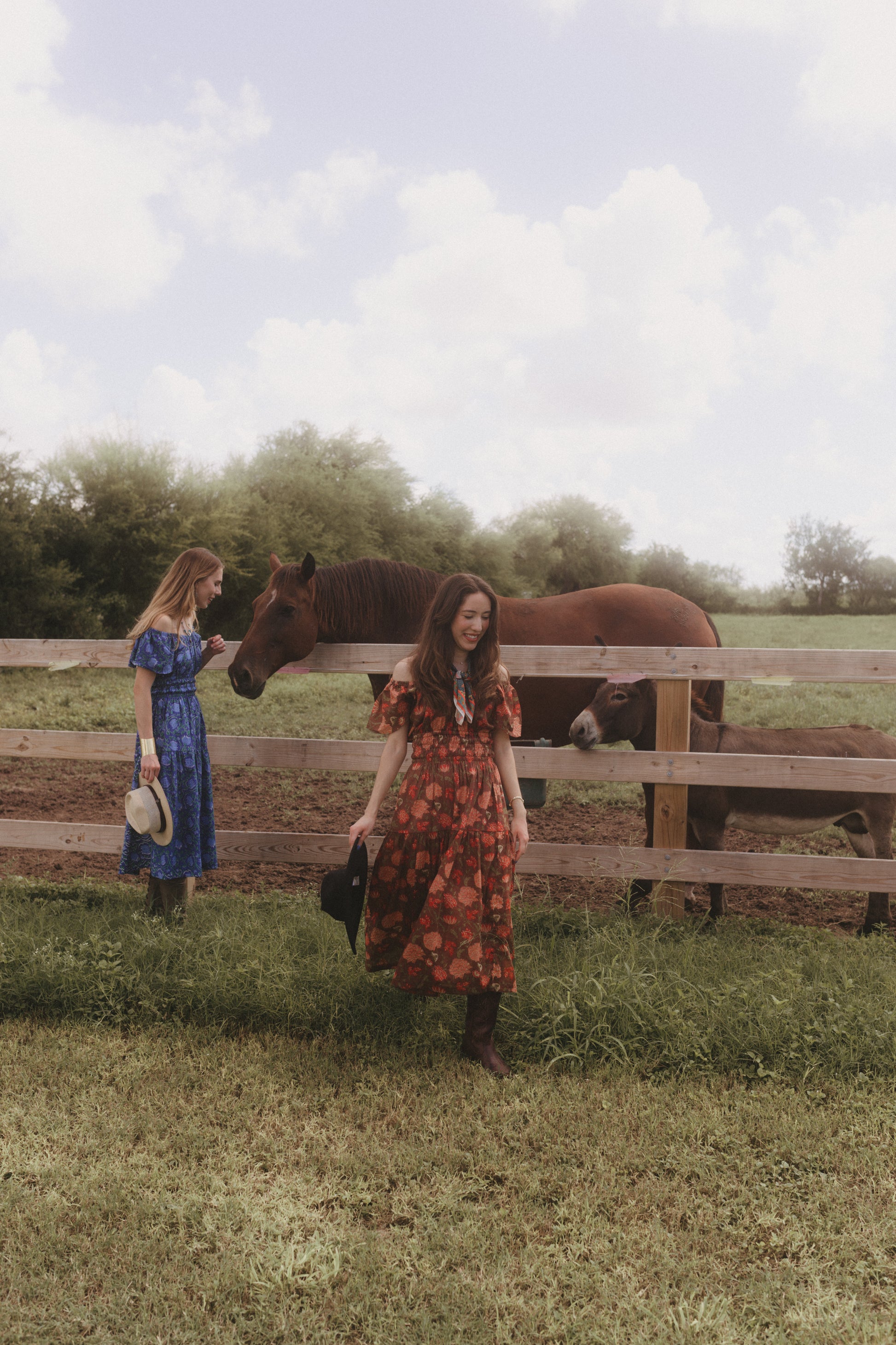 A timeless and versatile silhouette, the Lydia Dress in Toffee Tinsel, designed for effortless stying. Inspired by a western Fall with a unique hand block printed design.