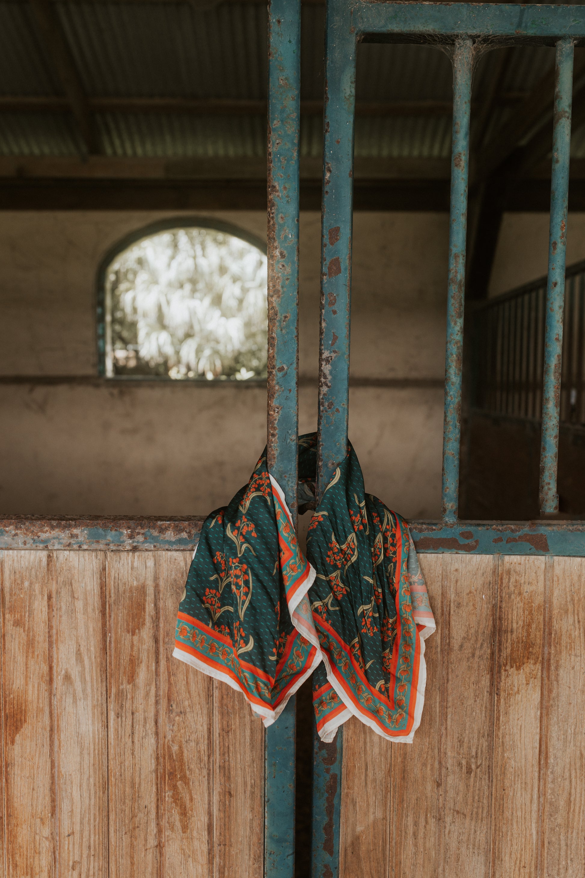 Bright, bold, and filled with charm, the Mistletoe Scarf is your new favorite signature accessory! A timeless piece and our take on Western wear, the Mistletoe Scarf with our brand new print in collaboration with Ashton Elizabeth Collective. Wear it for holiday season or accessorize your favorite pieces with our elegant 100% cotton poplin scarf.